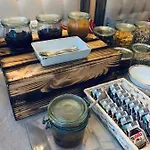 Generøs og lækker morgenmad med varme varer, supervenligt personale. Stilfuldt værelse, godt, med terrassen og godt brusebad plus en kop kaffe. Dejlig beliggenhed med parkering på stedet.